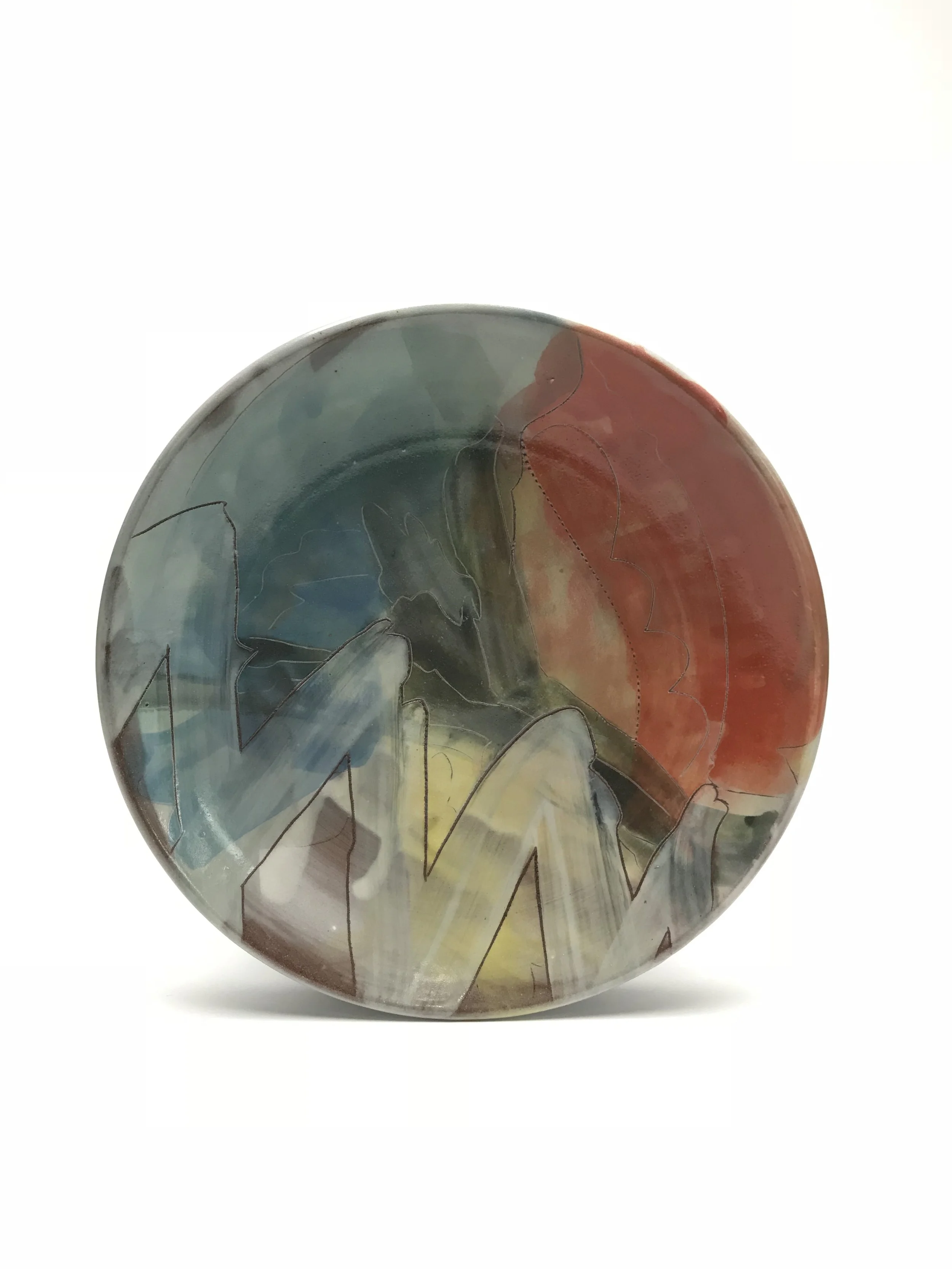PLATTER, 2 X 14 X 14", EARTHEN RED CLAY, SLIPS, UNDERGLAZE, GLAZE. 2018